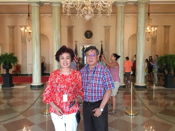 (我們在白宮內部正門大廳裡合影)