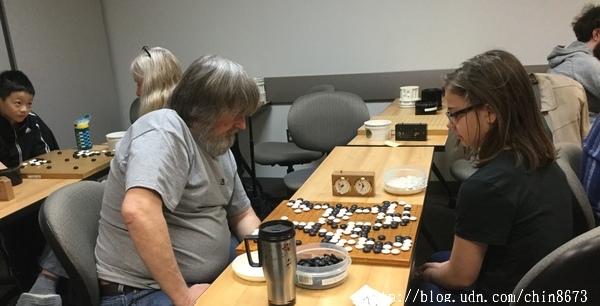 問:「難怪一提到圍棋,華府華人中,第一個想到的就是您。」 答:「其實,還是有許多默默灌溉圍棋的人啦。我的棉薄奉獻,在本地圍棋界,竟然小有名聲,始料未及。有些是實至名歸,不少是浪得虛名(恰似棋中有實有虛,虛實互現呢!)虛名遠播,是有「副作用」的,例如,本地海華中心董事長趙惠普就曾主動來到德元棋社,該中心計劃辦個圍棋社想請我去幫忙,我允諾找棋具、棋友、發廣告,找場地、租金、行政活等煩雜事都丟給他,我倆相談甚歡,一拍即合!最後在交通便利的Pimmit Hills老人中心,成立了「泰森角圍棋社」(Tysons Corner Go Club)。」