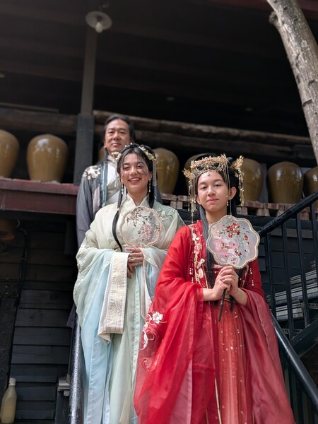 作者兒孫從美國返鄉懇親時前來蛇窯 漢服邂逅帶來令人驚豔的效果