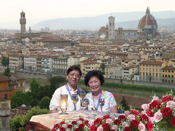 我們吃飯的餐廳就在希諾利亞廣場附近,這是翡冷翠的活動重心,街坊各地都是典型的文藝復興時代流傳下來的建築與格局,街道不寬,卻維護得非常清潔完整,我們吃完飯後,早已忘記翡冷翠中央市場的擁擠人潮。我們仍舊在夜色蒼茫中乘坐歐洲之星高速火車返回羅馬,沿途仍舊經過托斯卡尼的葡萄園及釀酒區,義大利是很自傲的國家,翡冷翠真是一個很浪漫的地方,走一趟翡冷翠,真是味覺與視覺的雙重饗宴!