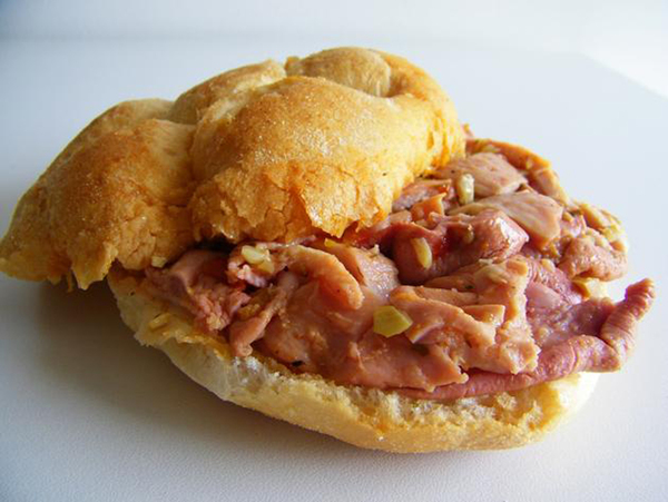 這家藏在中央市場角落的牛肚堡專賣店是將牛肚以高湯清燉熬煮至軟嫩入味,待客人點餐時,師傅才用中間的肉叉從滷鍋中取出切細,再以Panini切開夾入,由於清燉牛肚沒特別味道,在麵包中另加紅醬、綠醬提味,一口咬下去,酥脆麵包外皮搭上沾以紅綠醬的濕潤牛肚,這味道還真是好吃。這間專賣店是從中央市場開幕以來就一直以販售低價美味聞名,可以點三明治形式的,也可以點只有肉的單點,牛肚作法是以牛骨熬煮高湯,用悶燉的方式將牛肚燉到軟爛入味入口即化,最著名的吃法是用當地知名的酥脆法國麵包夾住,店家會再淋上特別熬煮微帶辣味的醬汁,牛肚的高湯汁進入麵包後會將原本硬硬的麵包浸濕變軟容易入口,香濃的醬汁混著牛肚香,加上法式麵包略帶嚼勁的口感,正是這家老店在國際上遠近馳名的絕妙之處,完全沒有腥味,符合我們台灣人口味!