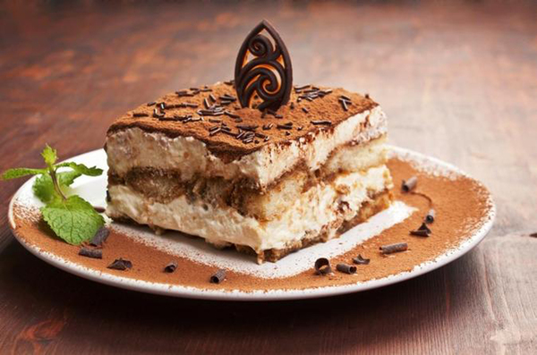 其實這一餐我們最期待的就是嚐嚐最經典的原味提拉米蘇,就如同到巴黎必吃的甜點是馬卡龍、到倫敦則是瑪芬一樣,到了翡冷翠那就是要嚐提拉米蘇來挑動我們的味蕾享受。提拉米蘇是一種有名的義大利式蛋糕,它是由泡過咖啡或蘭姆酒的手指餅乾,加上一層馬斯卡彭起司、蛋黃、糖的混合物,然後再在蛋糕表面灑上一層可可粉而成,夾層的棉花芝士慕思口感十分滑順,而底層的手指蛋糕則是柔軟又濕潤,吃起來不甜不膩,個人覺得甜度稍低,其中的酒香及咖啡香反而是較為鮮明,小巧精美的提拉米蘇,賞心悅目的外表,還真讓我們有點不忍心吃掉!