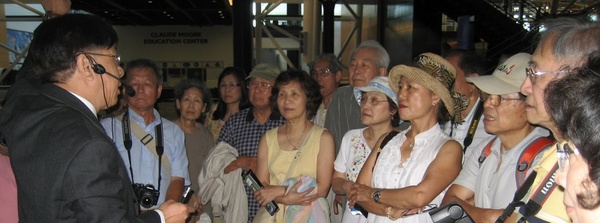 王福權為華人遊客解說各類飛機、航天飛船或是各類飛行的通俗原理。