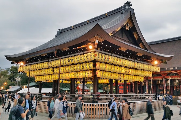 京都最出名的景點首推洛東地區,除了名聞遐邇的清水寺之外,體驗京都的懷舊風味最好的方式,就是在東山石疊古道中漫步,順著石疊道下山可走到八板神社,再轉到著名的祇園花見小路,尋訪傳說中的藝妓風采。由八板神社順著東大路上行至白川北通左轉,馬上就感受到祇園的傳統風情,與市區街道的喧囂形成強烈對比,好像又回到數百年前的場景,白川旁的茶屋及商店充滿了老舖的風味,白川北通有相當多的古美術藝品商店,一經過祇園新橋盡是酒館、茶屋,在祇園町裡,拔祭、無言詣、以及許多的風俗仍然存在著,這就是祇園最美也最具古典氣質之處了。
