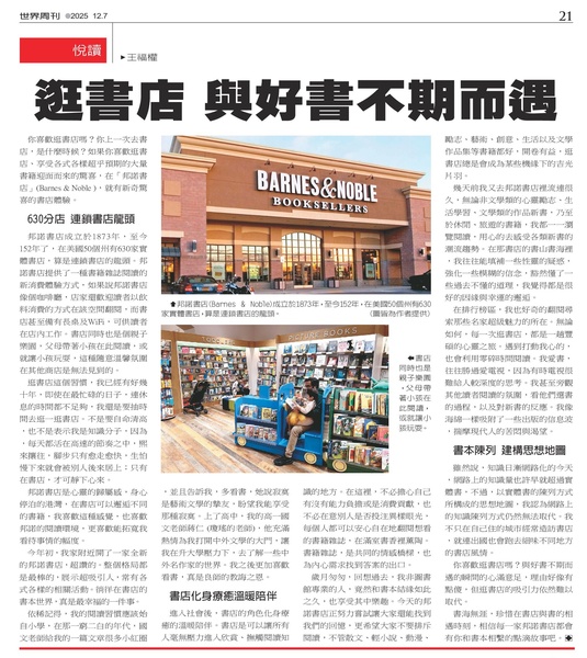 你喜歡逛書店嗎?你上一次去書店,是什麼時候?如果你喜歡逛書店、享受各式各樣超乎預期的大量書籍迎面而來的驚喜,身在今天的美國,大概只有去「邦諾書店 」(Barnes & Noble ),才能有新奇驚喜的書店體驗。