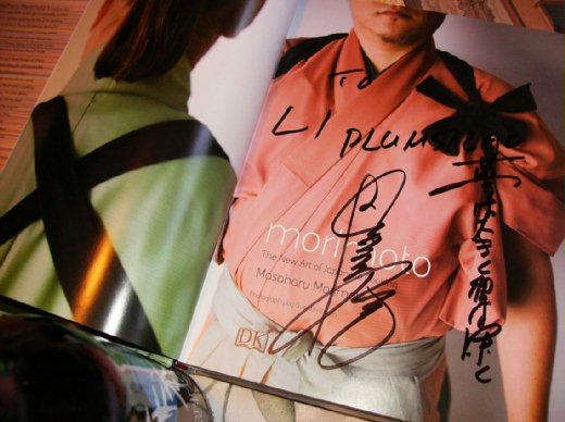 所以﹐那天去參加他的簽書會我是抱著仰慕大師的心情去的。十二點準時到﹐現場坐了一百多人﹐還有一條長龍排隊等著簽書。Morimoto簽書的位置在遠方的一角﹐所以看不到他的人。每個人的表情都是興奮的﹐除了少數的東方面孔﹐大部份是老美。