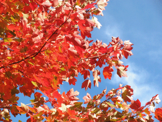 十月初﹐下了幾陣冷冷的雨﹐吹了幾天冷冷的風﹐綠葉就轉紅了。