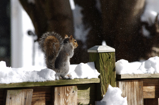 平常就愛偷偷摸摸搶鳥食吃的松鼠們這些天更是吃得肆無忌憚﹐雖然看起來還是有些鼠輩的鬼鬼祟祟﹐但比起以往來是明目張膽多了。我想雪天裡的松鼠﹐大約也是餓壞了。