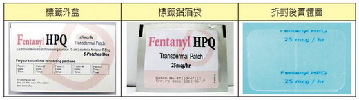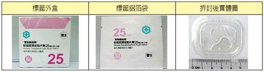 一、包裝資料:1. 新產品(“管制藥品局”吩坦尼穿皮貼片劑25微公克/小時)(表一)2. 原產品(“漢姆”吩坦尼穿皮貼片劑25微公克/小時)(表二)