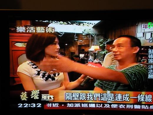 前幾天我在年代看到洪志勝又上電視接受電視台女記者的訪問,聽他侃侃而談,是真的很用心在講,只是女記者的表情不佳,應該就僅是在工作,不是在欣賞因此無法深刻體會洪志勝的想法吧。其實,要懂我們協會的大畫家洪志勝,最好的方式應該是去九份茶坊坐下來,與他好好喝一杯茶,好好與他深談。另外,在九份茶坊,也會遇見我們協會的副秘書長吳惠敏小姐喔,所以去九份真的兼有認親與休閒的雙重功能。