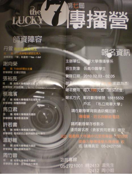 你想知道傳播在幹嘛嗎--2010南華傳播系傳播營開始招生-快來報名囉