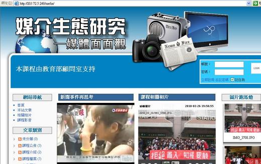 去年向教育部顧問室申請優質通識教育課程「媒介生態研究〜媒體面面觀」在今年一月通過申請,且在98[2]起正式執行。這門課由於需要教學網頁,因此央請系上專業的許若書老師幫忙設計網頁以及其他。由於大家都超級忙碌,溝通時間好少,不過所幸經過大家一個多月的努力之後,網站終於架設起來,感覺還不錯,果然是眾志成城,辛苦有所得。