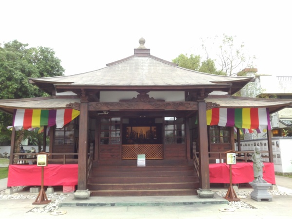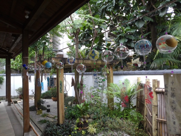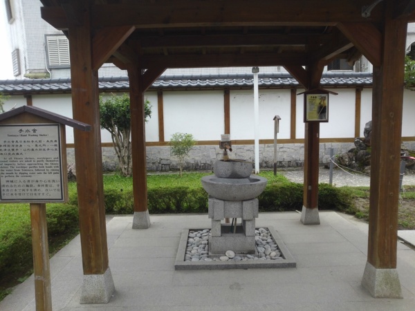 第一站慶修院。門前簡約素樸,入院清幽淡靜,梵樂耳邊繚繞,觀光客不多,陰冷空氣下反倒顯得此處空靈。慶修院舊稱吉野佈教所,吉野村即今日的吉安鄉,日據時期日人在此開闢移民村,獎勵日人渡海前來開墾,由於居民多半來自四國沿岸的吉野村,為撫慰移民者思鄉之情,安定人心,特建此院。院內流露濃厚日式風情,石燈、手水舍、百度石、不動名王神像仍保存完好;中間有一水池仿四國地形,說明寺院源來;八十八尊石佛沿牆排開,沉穩莊嚴。石佛據說迎自空海大師(真言宗創辦人)當年為世人消災解厄,行遍四國佈教時所開創的八十八間靈場,讓吉野村信徒可就近參拜,免除奔波之苦。八十八亦代表人心八十八種煩惱,巡拜八十八靈場後,煩惱即不再執著。當然,歷經歲月更迭,原始八十八尊石佛難以周全,今日所見,很多已不是舊時原貌,但法像莊嚴不變。販賣部後方,有一小區庭園,樑柱間掛上一排風鈴,風吹鈴动,叮叮咚咚,悅耳動聽。用票根在這裡換了一杯薑茶,暖手也暖心。