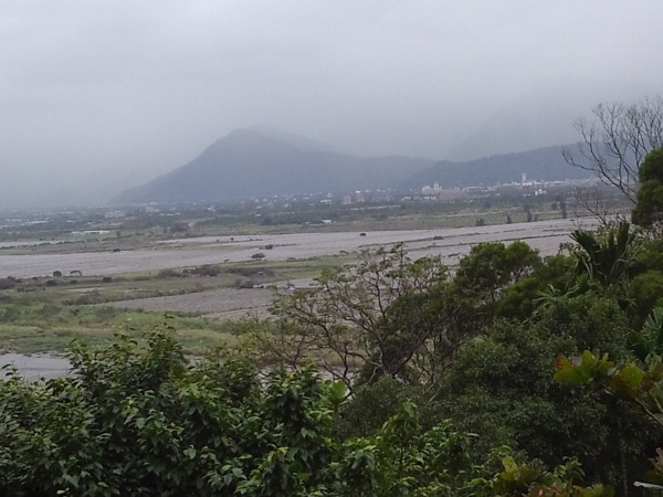 續行,聽從民宿大哥建議,往193縣道前進,走山線看花東縱谷。一路沿著海岸山脈及花蓮溪,193縣道路面狹窄,曲折蜿蜒,視野卻出奇遼闊,景色優美。遠望,群山層疊,雲霧低垂,眼下西瓜田綿延成一片荒蕪,溪水潺弱,冬日景像別有一番風味。一路上人煙稀少,往來車輛幾希,鄉村小道田園風光依舊滿眼綠意,如果金城武來這裡騎腳踏車,這裡應該也會爆紅吧。