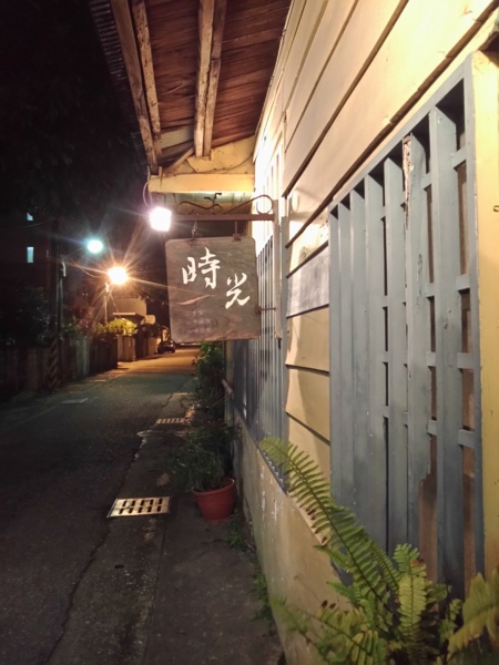 在老闆娘建議下,來到時光二手書店。書店座落在一處不起眼的窄小巷弄裡,一棟日式老建築在昏黄路灯照映下,頗有懷舊氛圍,彷彿時光凝結,往日重現。店內書香滿溢,自然流洩出一股典雅,慵懶的貓咪自顧自的遊走,貓與書,成了這裡特殊的一道風景;飲料區有早期文藝氣息,在這裡歇腳點一杯飲料,享受被書香圍繞的感覺,是種有氣質的行為。