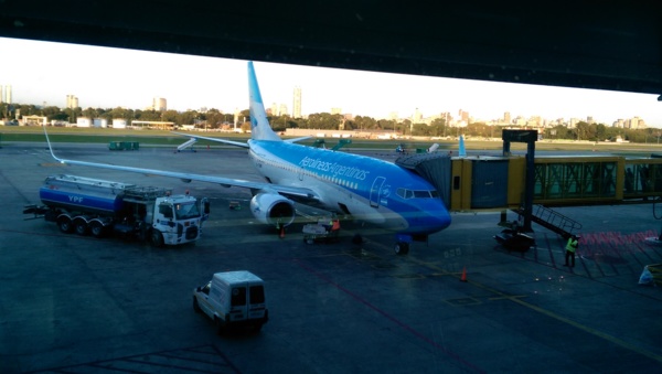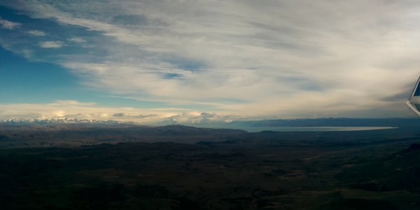 沿七九大道來到國內機場,搭乘AR1874 08:10班機欲前往巴塔哥尼亞的El calafate小鎮,尋訪冰川國家公園。二樓候機室外,映入眼簾的是一片浩瀚大海,遠處近曉的一抹紅光,白日降臨,視野頗佳。小楊,我們的導遊,說那不是海,是河,拉布拉托河(La Plata Parana River),不管是海是河,無邊遼闊就是讓人抒懷。