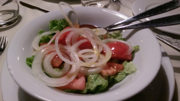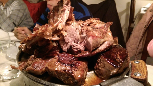 阿根廷是有名的畜牧大國,出產的牛羊舉世聞名,因為肉質好,所以當地一般吃法都是標榜原味碳烤。雖然我不吃牛也不吃羊,但來到這裏完全破戒,出來玩沒什麼好堅持的(謎之音:根本是給自己想吃的藉口)。餐廳的沙拉爽口,上桌的肉盤给的很大器,羊肉尚嫩牛肉有些過老,可今日睡不好餓過頭又冷到爆,身體一直不舒服,吃的功力大減,團員似乎也都吃的不多,可惜了那一大盤盤中飧。