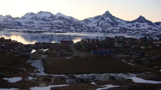 靠近北極圈的格陵蘭,夏天裡沒有黑夜,不管晚上吃飯或睡覺,外頭總是亮澄澄一片,對身處亞熱帶的我們來說總有些不習慣。半夜12點,睡不著,起床對著窗外拍下了這張神秘夢幻的午夜陽光。(Midnight sun)