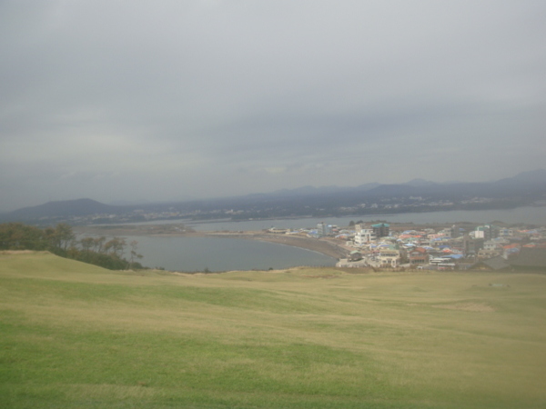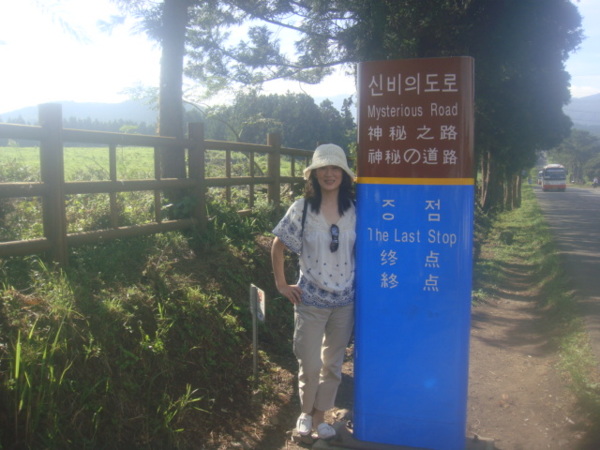 9:00一到,導遊小李的車已在碼頭邊等候,小李是剛畢業沒多久的韓國大學生,普通話講的還可以,因為家裡有遠見,小學就把他送去華文學校學中文,讓他現在可以靠帶團謀生。濟州島肯定是韓國的,路邊標誌招牌除了韓文,連英文都很少見,剛從船上下來,有點不太適應。