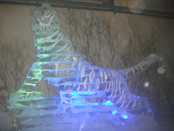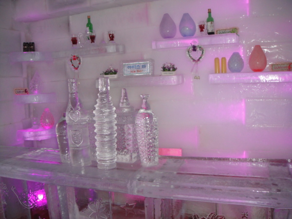 【濟州冰雕博物館+3D立體藝術館+5D立體電影】位於濟州南部,是除了自然景觀外,濟州政府為發展多元觀光所扶植的特色景點,我們來到時碰到一群中學生校外教學,吱吱喳喳講的不停,十足活力奔放,看得出來,同學們是很開心來到這裡。一樓是冰雕館,熟女從未看過真正冰雕,以前總想若有機會要去加拿大住住冰旅館,來到這裡,那念頭就自動delete,因為實在太冷了,即便包著毛毯,還是讓人直打哆嗦,這裡有冰客廳、冰酒吧、冰滑梯、冰龍、冰虎、冰企鵝等等,我們迅速拍照留念。