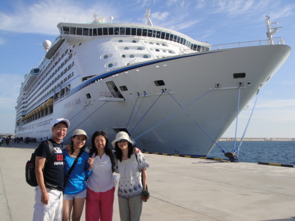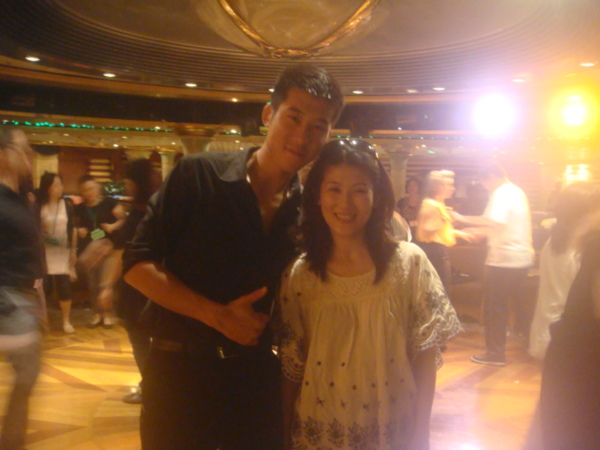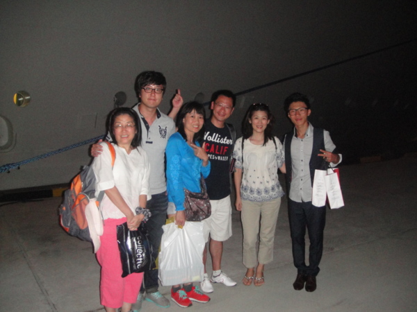 約莫七點初,我們也差不多該上路回船了,突然天空下起小小雨,路上交通有些擁擠,耽誤了一點我們回船的時間,回到船上已是7:45,謝謝小李今天的帶領,我們很滿意,上船前,照例要跟小李與司機拍照留念,無奈我那不爭氣的相機,拍出來竟是如此不清晰,還好小王的相機補了一張。