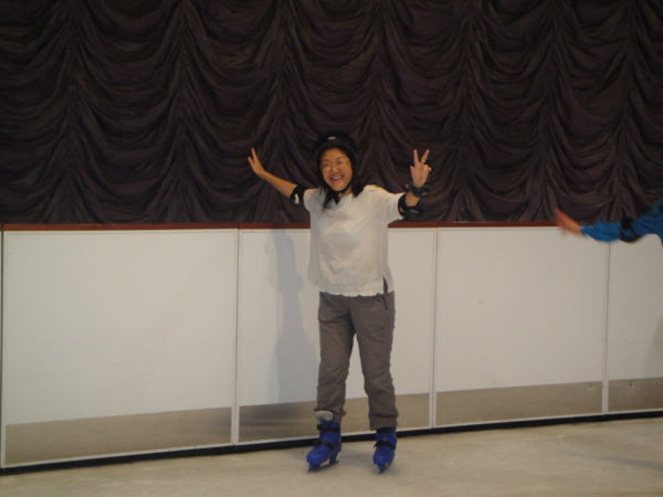 放下放下放下包包,換上牛仔褲,PM8:00我們要趕往冰宮體驗海上溜冰的快感。昨天看溜冰秀,腳有點癢,雖然沒溜過冰刀,但對於平衡這一檔事,賈姬直覺好像沒那麼困難。當然,剛開始有點害怕,但來回練習幾次慢慢也能抓到訣竅,其實就是保持平衡而已,雖然還不能到大膽跨步來回自如,但至少也可以不用扶著欄杆前進,這裡的冰宮場地較小,我想回到台北後,有機會一定要到小巨蛋去過過癮。