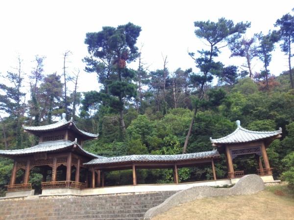 離開坑道,我欲尋訪失落的831軍中樂園,舉凡廢棄、荒涼、頹圮的地方,我一概有興趣。順著地圖指示,來到梅石村,一路陡下,經過馬祖幹訓班,路底是中正堂及介壽亭(圖下),環境清幽,綠樹成蔭,風景秀麗,可惜天氣頗熱,沒人有心賞景,我來來回回尋找我的831,可831硬是不現? 雖然我沒有死心,但也不好拖著我的旅伴陪我一起,這時Rachel提議要去88坑道,雖然方向背道而馳,但一時也不知該往哪去,就往八八坑道去吧。