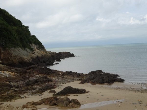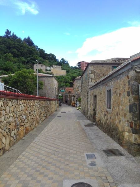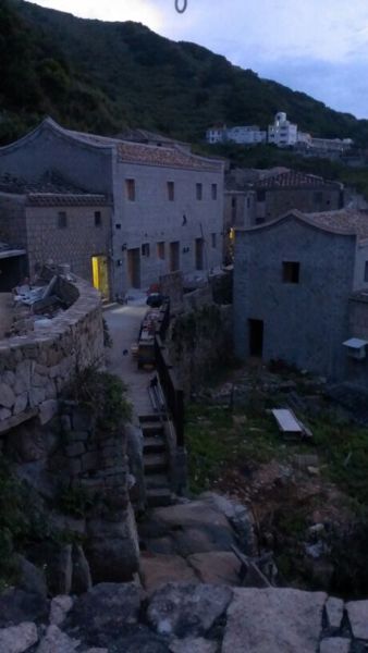 牛角村的牛嵐民宿是我跟Pauline明要住宿的地點,既然都來到這裡了就順便找找,也跟主人打聲招呼。牛角聚落也是典型的閩東建築,石砌步道蜿蜒,花崗石屋牆面方正,層層疊疊,巷弄人家安靜悠閒,曲折中找了一會才找到牛嵐,一處古宅改建的民宿,無華樸實,前庭有景可遠眺海面,跟曹老闆說明天不會太早check in,我們又要繼續趕路,往媽祖神像前進。