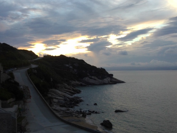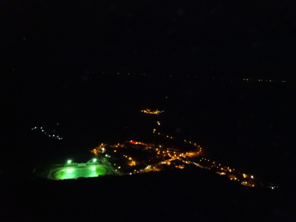 晚餐,在橋仔村,一個神比人多的村莊,但到時天色已晚甚麼都看不到,明天一早又要離開,此次跟這個村莊是無緣了,但好吃的餐廳一定不能錯過,找餐廳很重要的一個絕竅就是多聽多看多問,選了這家,忘了餐廳名稱(如下圖),老闆態度親切,東西好吃,聽鄰桌說美食節目都來報導過。吃到一半還遇見中午在【依麽的店】的旅人,我們就這麼又併桌吃了起來。問老闆,晚上北竿可以去哪裡? 老闆建議壁山看夜景,壁山是北竿最高山,騎車上坡要小心,老闆如此交代著。於是一行人浩浩蕩蕩往壁山前進,約莫6-7分鐘車程,來到觀景台,附近還有一處戰地指揮所。看山腳下的塘歧村落,沒有耀眼璀璨的萬家燈火,夜景很樸實(圖下)。離去時,遇見一位愛喇賽的阿兵哥,建議我們可去塘岐村走走,塘歧是北竿的政經中心,還有7-11。7-11頓時成了地方繁不繁榮的指標。因想多看看幾個地方,就這麼騎車一村晃過一村,那感覺有點像念書時夜遊的樂趣。塘歧商圈離北竿機場很近,除了7-11,還有歇腳亭,買了一杯蜂蜜檸檬解渴,其實這裡的熱鬧很不熱鬧,不能用都市的標準去定義但整個馬祖都很適合放空。