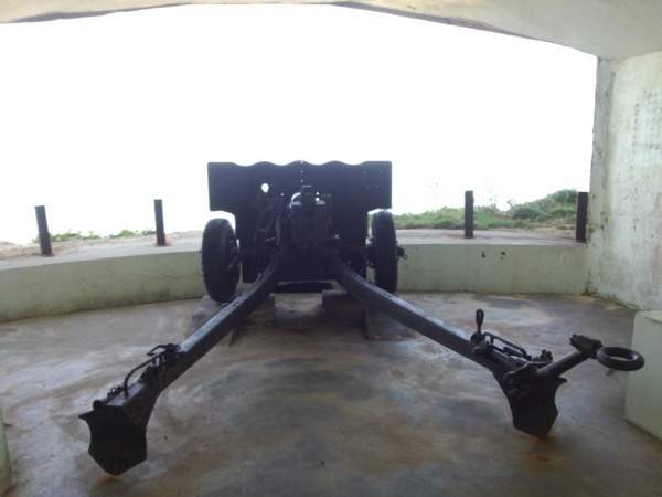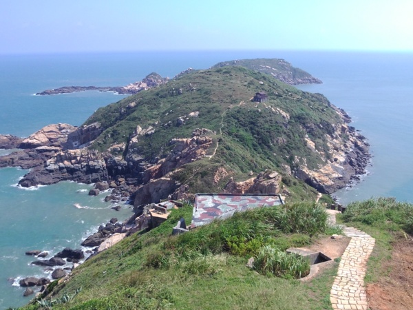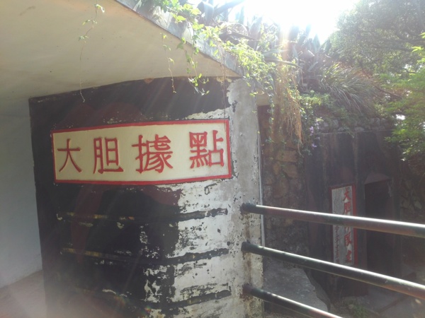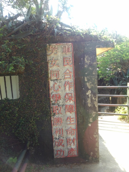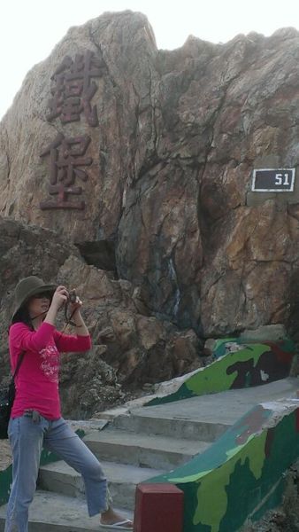 走進坑道,坑道口<<軍事重地>>標語提醒自己進入管制區,要用心來感受弟兄們當年戍守邊疆的寂寞與心情,一斧一鏟鑿石而成的坑道,自然透涼,通路頗多,闢有連長室、中山室、官兵寢室等,空間狹小潮濕,一年四季不論何時,不管站或睡應該都很不舒服,對曾奉獻青春歲月於此的軍官將士,發自內心的想說聲:謝謝,辛苦了。對外的多處射口架設有砲台,入眼皆美景。到此,北竿的行程暫告一段落,我們還要趕搭4:30的交通船回南竿,今晚要住宿牛角聚落,方便明天搭乘一早的飛機離開。