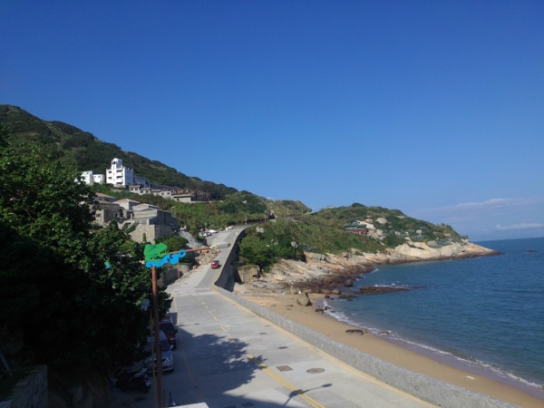 續行,往清水方向前進,途經馬祖日報社,對面的仁愛村社區口賣弟餅的小攤還沒收,買了一個來嚐鮮,味道挺不錯,社區內還有賣鹽酥雞,這在台灣很普遍,在這裡並不多見,Pauline買了兩樣,我們邊走邊吃,順逛了逛仁愛老街,仁愛老街是馬祖當地人家生活的樣子,路底就是天后宮,那天沒走到上頭來,錯過林義和古井,今天就這麼發現了,林義和是南竿的傳奇人物,有興趣者自行Google。社區內還有一家歡歡冰店,料好實在,味道可口,值得推薦。