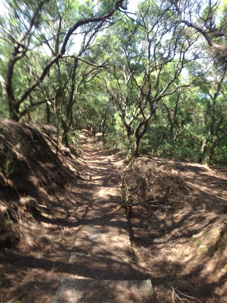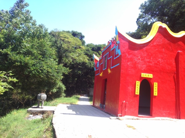 這時來了一群遊客,他們是從廟後方的步道走來,路程較短,但有見到梅花鹿蹤跡,這下又激起我的鬥志,往廟方向前進。島上的景觀步道基本上是環狀的,中途都有轉折點可以回到起點,簡言之就是選擇繞大圈或小圈的差別而已。我加快腳步走回較陰涼的林蔭步道,一樣的視覺美景,走來頗為悠閒,但還是沒看到梅花鹿。我想有看到梅花鹿的人運氣特別好,大部分人應該都跟我一樣,也就沒太介意。