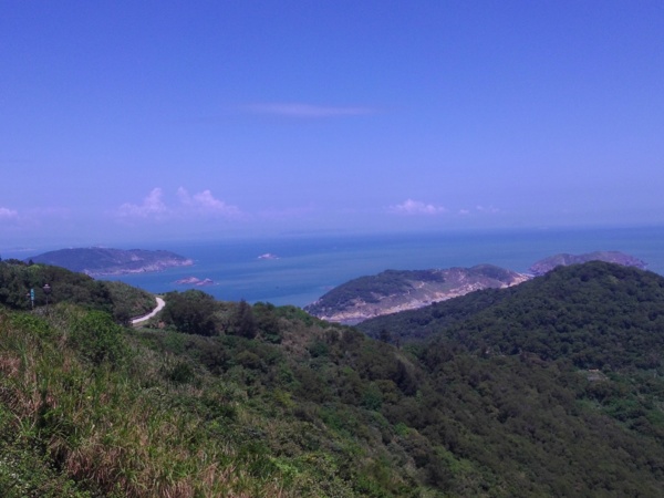 來到一處觀景亭,視野絕佳可眺望大小坵島,兩島似有步道相通,但看看時間,是不可能再繼續往下走的,只好作罷。在觀景台上賞景。