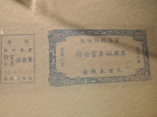 12據點是個景觀平台,盤據螺山蚌山之上,視野遼闊,山水美景近在眼前(圖下);平台下是戰爭和平紀念館,透過文字與影像,娓娓訴說戰地馬祖過去的歷史滄桑及幽幽歲月;這裡並展有戒嚴時期兩岸的空飄傳單及海漂文宣品,還有官兵娛樂券也就是831軍中樂園門票,現在看來有趣,其實那個年代離我們也不過幾十年前而已,主題館旁還有個大膽據點順便逛逛拍照。
