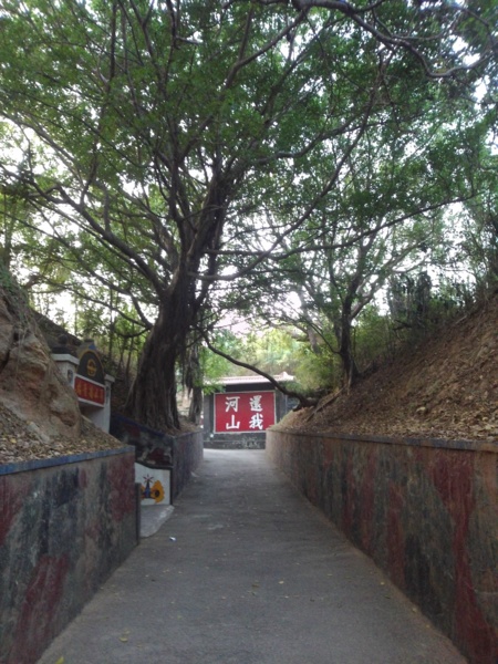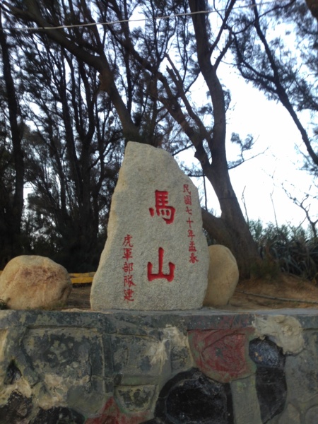 臨海,林樹掩映,幽靜。馬山觀測所外,風景優美。門口還有駐軍及拒馬,軍事重地之威不言可喻。正前方是一條宛如綠色隧道的步道,盡頭處,紅底白字<<還我河山>>標語令人肅然起敬,見證曾經風雨飄搖的年代。