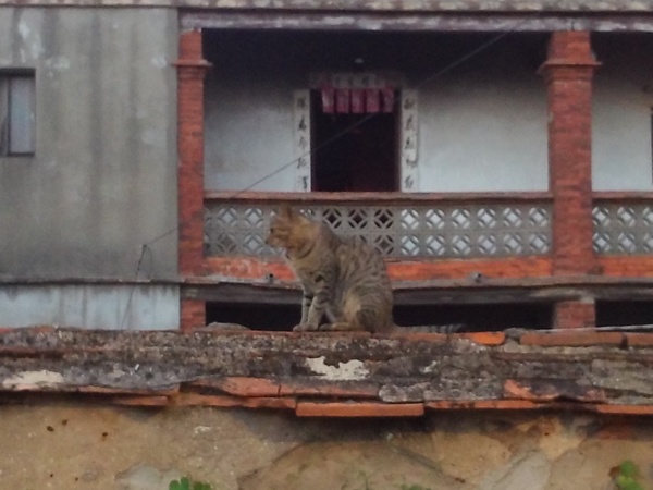 沙美老街,街道荒涼,巷弄無聲,房舍破舊頹圮,宛如一座無人廢墟,野貓佔地為王。草木零落,美人遲暮,日落時分前來,這裡正傷感。