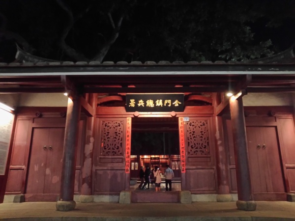 19:30,華燈初上,夜遊美麗後浦小鎮正要展開。後浦是金城舊稱,縣政府每日舉辦的免費夜間導覽活動,在義工帶領下,領略古鎮小城的歷史、建築與人文。集合點在總兵署,行程從這裡開始,故事從金門的地形及過去開始講起: