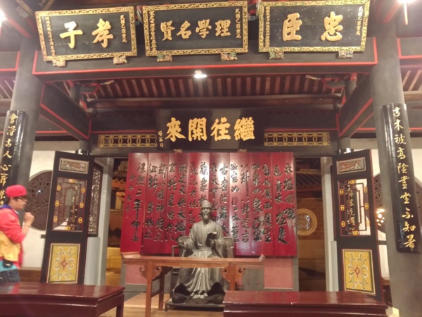 ※ 浯江書院(朱子祠),宋代理學大師朱熹曾至金門辦學講座,對當地文風鼎盛有深遠影響,是目前金門四大書院中僅存的一座,建於清乾隆45年,歷經幾次整建、修復,已不全然是過去原貌。書院中庭講堂,仿古代學堂夫子講學擺設,走到這裡,我們正好可以坐在椅子上休息,環顧課堂四周,這裡的匾額、桌椅看的出重製的痕跡;講堂後方是朱子祠,仍保有原始形制及木造結構,是書院中唯一的古蹟,寺內奉祀朱熹,門口牌匾為國學大師錢穆所題,在這裡學了一句成語【海濱鄒魯】
