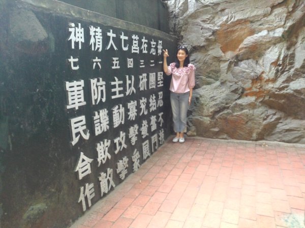 2點前,來到金門民防坑道。書上說:全長2.5公里,縱橫交錯,連接金門許多政經據點,構成集中防衛、動員及經濟運作於一體的堅固地下戰鬥防空洞…,書中描述引起我的興趣,與旅伴前來,2人卻不能成行,櫃檯人員說:因為坑道長,空氣稀,怕人少出事難以互相救援,散客至少要五人一組才能進入。聽來好像有點道理。等了一會又來一個自助客-Leo,說來真巧,他也是今晚要回廈門,就這麼認識一個新朋友,一路做伴到廈門。此時散客只有我們三個,卻來了一團觀光客,搭順風車,我們跟著進入。坑道開放只有1.2公里,狹窄不容人並行,縱橫交錯的點全封鎖不給進,只有一路向前行,跟當初想像的地下城很不同。走久了有點無聊,也無路撤退,從金城車站進,金門高中出,約略30分鐘路程,然後我們又走了約30分鐘回原點取車,這個景點不算是成功的安排。