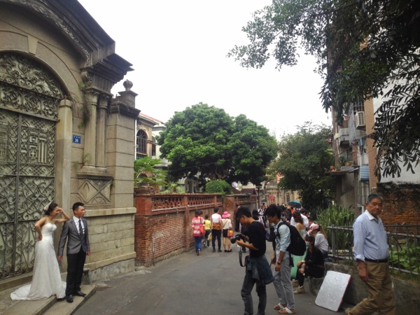 鼓浪嶼,一座被允許恣意放肆浪漫,充滿瓊瑤文藝風格的島嶼。島上道路蜿蜒起伏,領事館內花木扶疏;舊洋樓老別墅,深深庭院,人事浮沉;大戶人家曾經風華歲月,物換星移後,而今觀光客人潮洶湧,吵鬧不可避免,鬧靜新舊之間,這裡成了新人拍照取景的最佳地點,短短一段路,新人數十組。