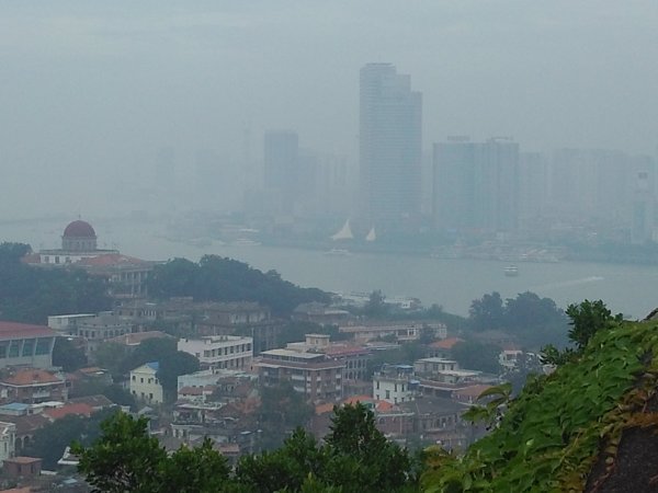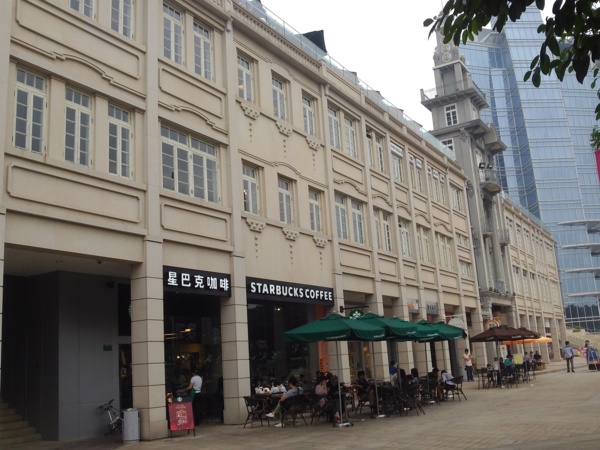 從渡輪口回飯店,經中山路,最熱鬧的廈門商業街,路口拍照,沒力氣逛,眼到視同來過。途經號稱全中國做大的星巴克,白色古典歐式長排建築,優雅簡約,據說四樓露臺擁有無敵海景,可一覽鼓浪嶼風光,觀光客即便腿快斷了,還是拼足全力上樓一探究竟,四樓座無虛席,茫霧的天氣,視野少了清晰,看不清傳說中的美景。不過同樣是喝一杯咖啡,在這至少有免費海景,應該還是值得推薦。
