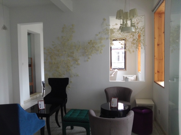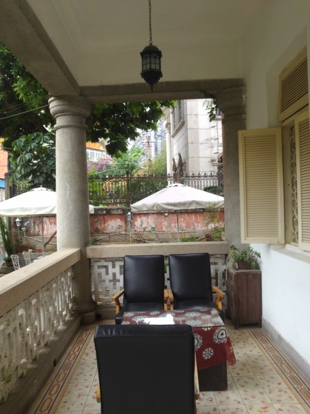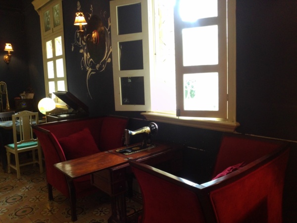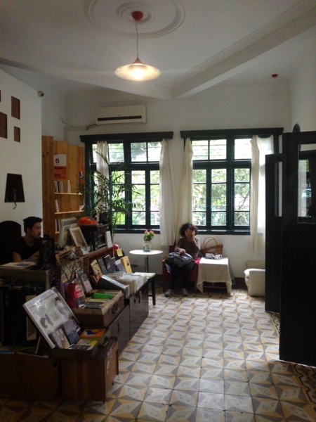 32how,華新路32號。靜巷內的一座老洋房,粉紅九重葛艷麗翻牆,牆裏牆外綠意蔥蔥,院落寬闊,錯落有致;白色門內,一部老爺摩托車停放,四周盡是復古風情。咖啡廳(cherry 32) 感覺典雅高貴,窗台下,紅色絲絨椅,裁縫車當桌,設計兼具創意及品味,真想坐在這裡喝杯咖啡獨享幸福空間,可惜時間不允許,PM1:00前還要趕回飯店,咖啡只能暫存腦海裡。樓上還有紅酒屋、圖書館等,都是讓人眼睛一亮的設計。