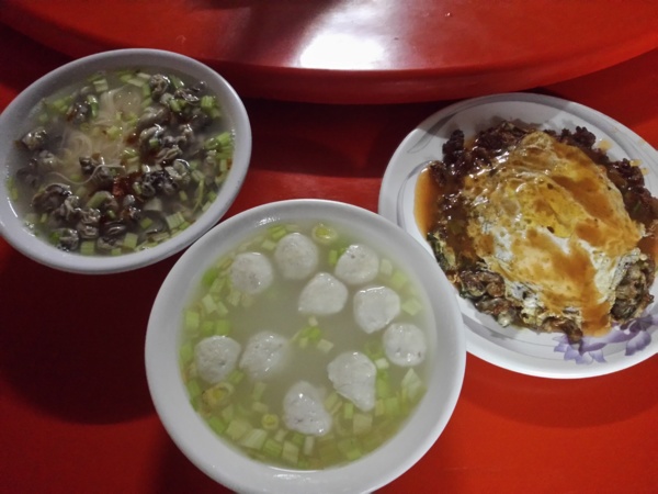 晚餐時間,回水頭聚落吃金道地的蚵仔煎,當地人推薦的美食。料多實在,但口味跟本島差很大,以韭菜高麗菜為底,滿滿蚵仔,煎得像餅,口感較紮實,與習慣吃到的軟軟嫩嫩太白粉煎不一樣,感覺跟廈門的海鱺餅較接近。另外加點了魚碗湯及蚵仔麵線,蚵仔真的太多,少放點不行?