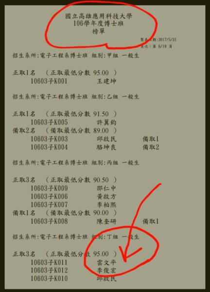 雲文平醫師要重新進入新的研究領域,順利進入高雄應用科技大學電子工程博士班 !!!