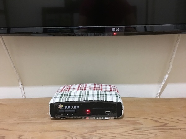 電視下方有兩條黑色電線和機上盒,愈看愈礙眼,所以動了點手腳。