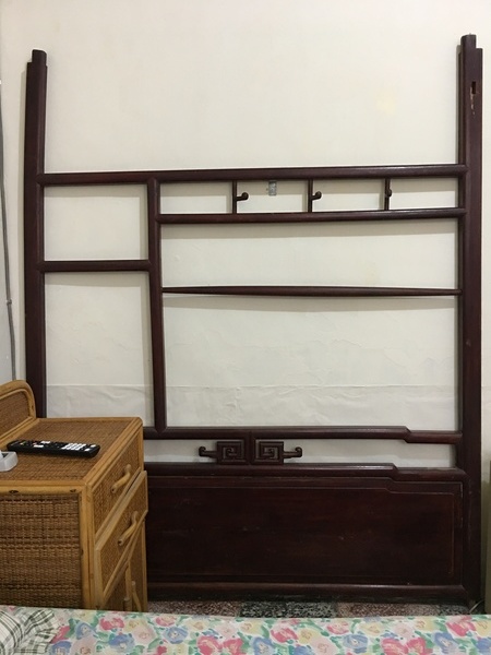 主臥室的床搬下去了,但床頭櫃並没有搬下去。客房沒有床頭櫃,讓床直接頂著牆,總覺得怪怪的,是不是該在牆面釘塊木板?