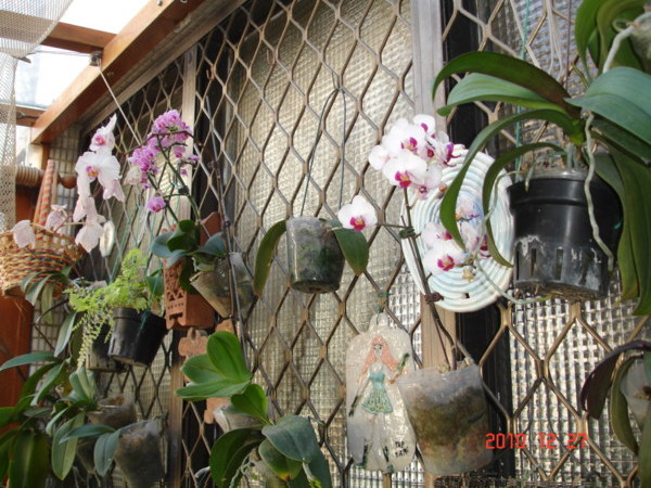另一側是網格狀鋁窗,可以懸掛植物。