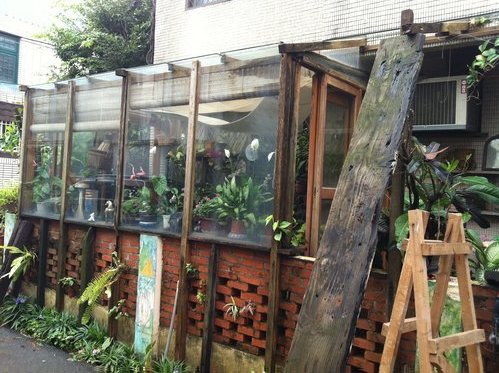 玻璃屋最大的特色仍是「廢物利用」。木料主要購自舊料行,部份來自平時採集;大片強化玻璃則是同事居住的大樓廢棄的。期許以最少的金錢,達到最大的效益。