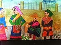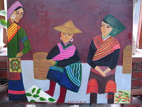 2006年7月,和幾位友人到北越旅行。從河內搭一夜臥舖火車抵達中越邊境,隔日再花約2小時車程到一個叫巴卡的地方,去參觀當地少數民族的市集。當大夥在小吃店內休憩時,店對面幾位穿著傳統服飾的擺攤婦女抓住我的目光。於是我坐在店門口,拿出小畫本和水彩,匆匆捕捉眼前的畫面。