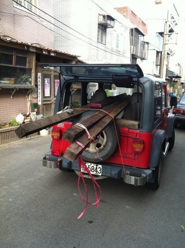 然而,過去常光顧的兩家店都關門了,其中一家據鄰居說老闆已過世。景物、人事皆非。只好跑到市區去找。一根木頭300,共買3根,但運費要700,他乾脆用自己的吉普車載。